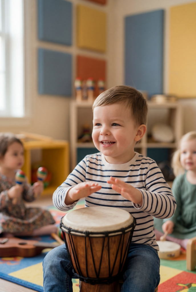 2. The age-specific curriculum is thoughtfully designed to go beyond typical developmental milestones, offering structured, research-based activities tailored to support each stage of early childhood growth. Studies show that musicians outperform non-musicans in perception, language, spatial reasoning and IQ, with measurable differences in brain structure and connectivity. These skills will translate to other areas of learning and life.